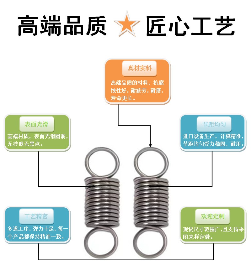 外径(0.01-12mm)线径可定制,专业生产电机漆包线弹簧,传感器弹簧,漆包线线圈,扁线漆包线弹簧、大小型涡卷弹簧、漆包线线成形弹簧、漆包线铜排、天线弹簧、压簧、拉簧、扣簧、扭簧、扁簧、卡簧、勾簧、弹簧片、E型扣、R型扣、开口销、模具弹簧、特殊弹簧、异型簧等各种精密弹簧、五金配件。产品符合ROHS要求。